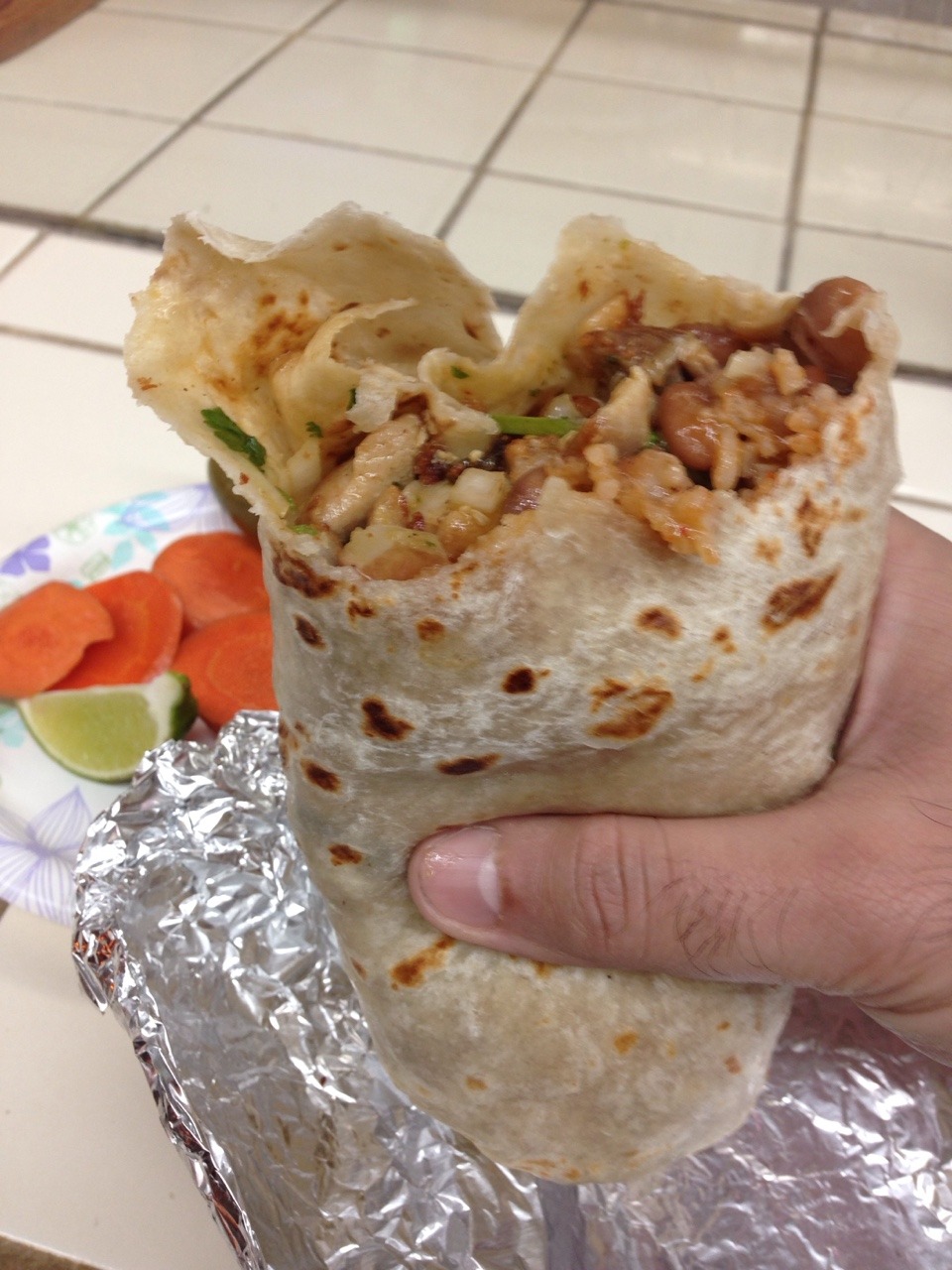 Regular Grilled Chicken Burrito from El Grullense on Middlefield Road. Redwood City, CA.