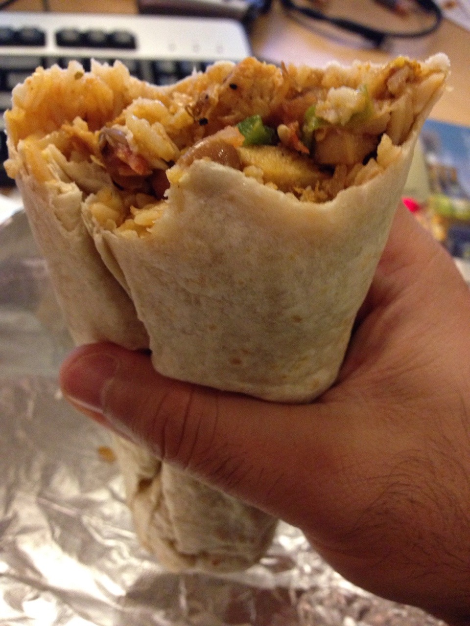 Regular grilled chicken burrito from The Iron Cactus on 4th Street. San Francisco, CA.