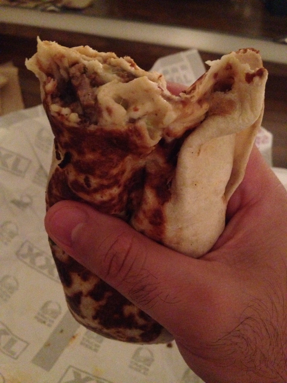 Steak grilled stuft burrito from Taco Bell on Geneva Avenue. Daly City, CA.
