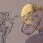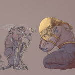 “I see my eyes, my skin, my teeth, a beast like me, as if we are the mirror copies of each other. A face of sunshine, are you a messenger from the time when the earth disk had no limits, when blood was redrawing the borders and the mighty ox was the small letter? I know nothing of the past, I am all titanium bone and an oil-powered heart. I had no choice when I was cast in iron, and when you were cast in gold – did you? How familiar is your face! I could’ve looked at you forever” –Liber Vermis