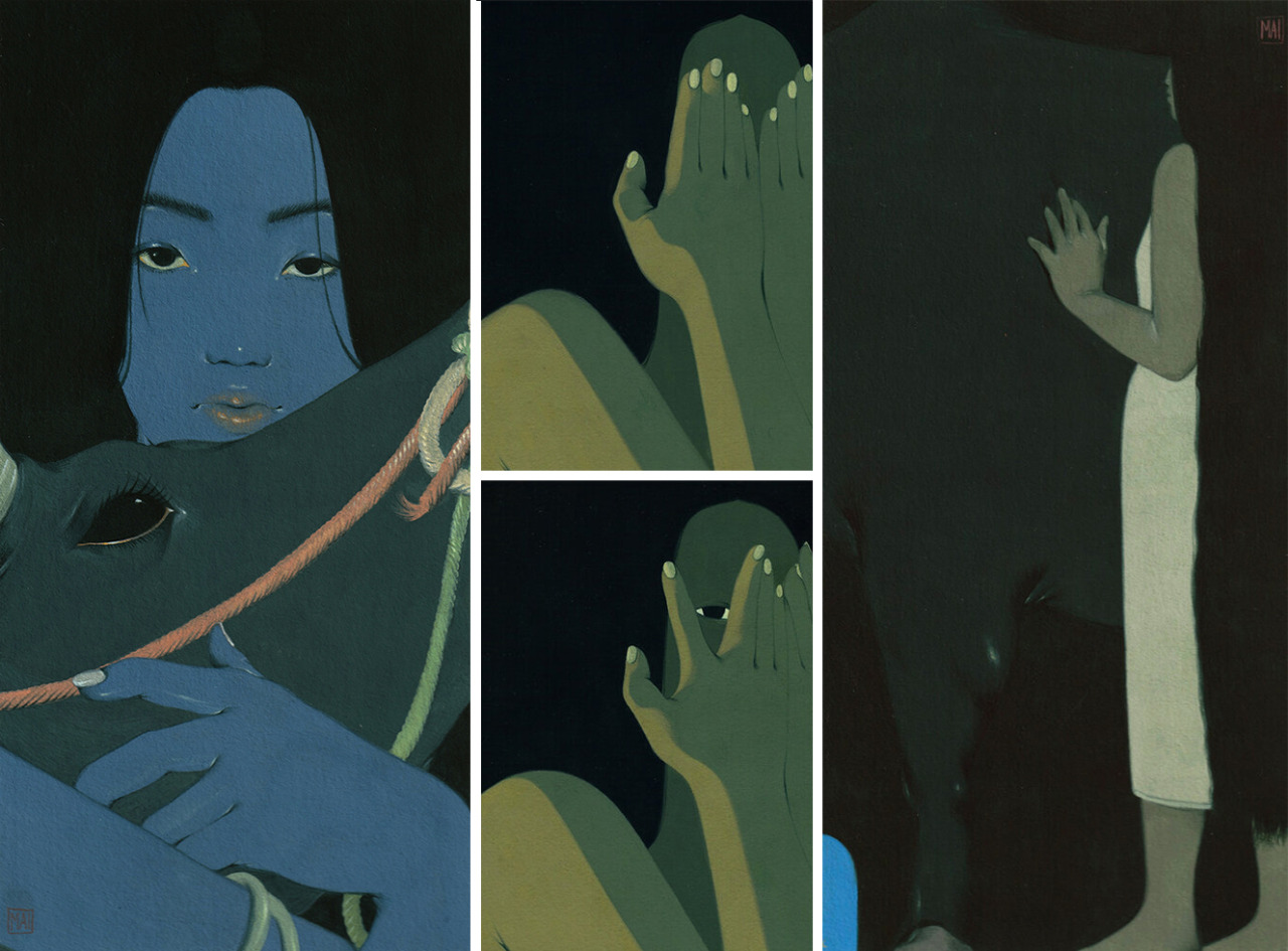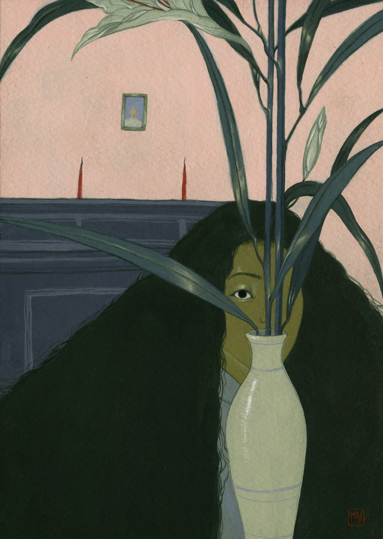 Plants, Hair, and Shadows Obscure Women in Introspective Gouache Paintings