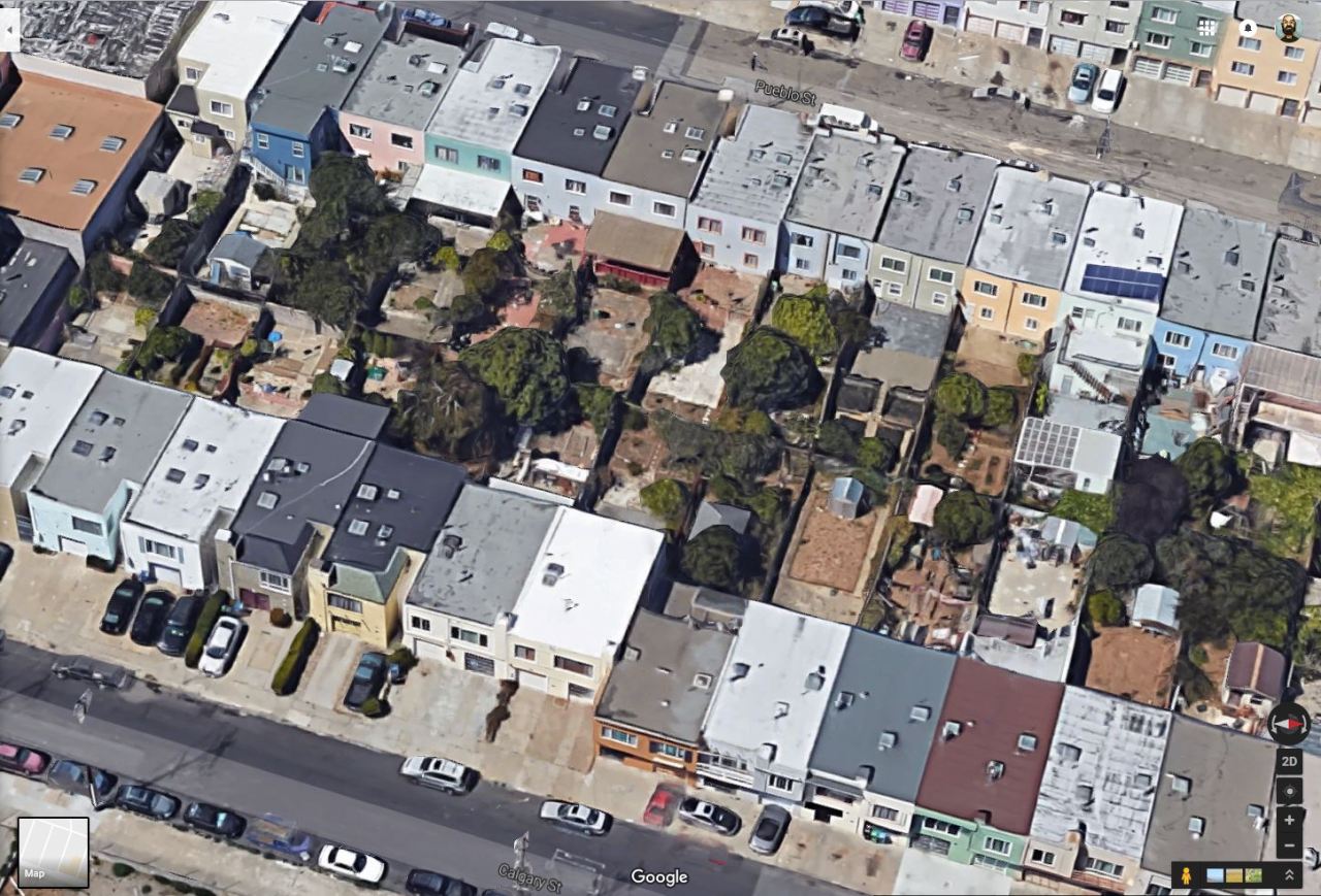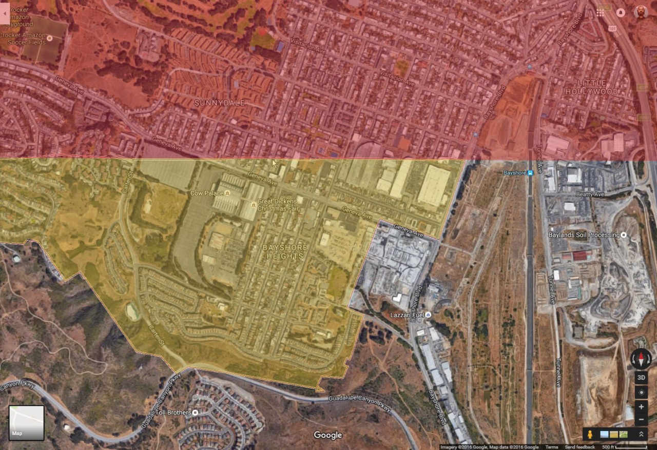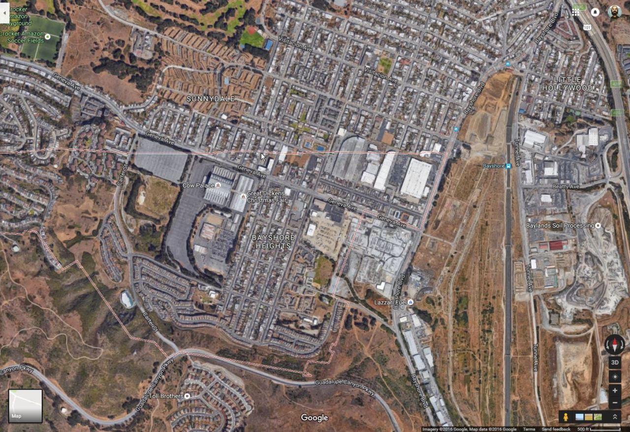 more or less along the boundary line (much nicer on the Daly City side). So I had to go and draw my own boundary lines and highlights to confirm that, yeah, I guess it’s possible, but jesus it still hurts my brain. I mean that city border doesn’t zig and zag to match what appears to be the reality of living there. It just slices through houses like they don’t matter. Are the city gov’t types too lazy to update the border with that level of granularity? Do residents realize it’s ultimately a pointless problem and thus leave it alone instead of seeking some kind of measure to update the border on maps? Is this just Google’s shortcut so they don’t need to draw that wacky border?
