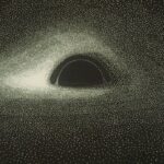 The first simulated image of a black hole was calculated with an IBM 7040 computer using 1960 punch cards and hand-plotted by French astrophysicist Jean-Pierre Luminet in 1978.