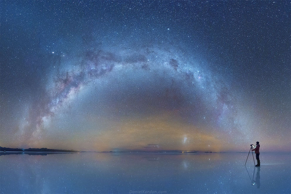 Daniel Kordan, traveled to the Salar de Uyuni in Bolivia – the world’s largest salt flat and took some photos that look out of this world. Using a Nikon D810A astrophotography DSLR and a 14-24mm f/2.8 Nikon lens, he managed to capture the Milky Way being reflected on the flooded salt flat at night, and the results are absolutely breathtaking.