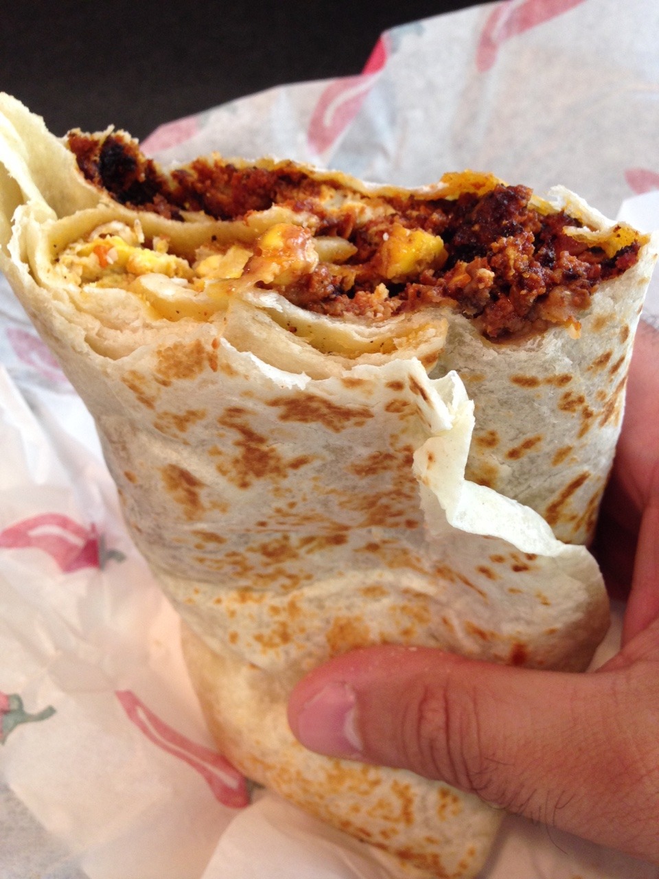 Chorizo and egg burrito from Señor Taco on Willamette Drive. West Linn, OR.