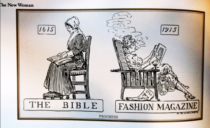 History geek note: Now I’m imagining an editorial cartoon from 1615 comparing “Ye Moderne Bible Reading Woman” with the good, old-fashioned women from 1315 who didn’t insist on learning to read the bible for themselves but were content to have a learned Man of the Church interpret it for them. I’d try drawing it myself if I could draw anything other then stick figures.