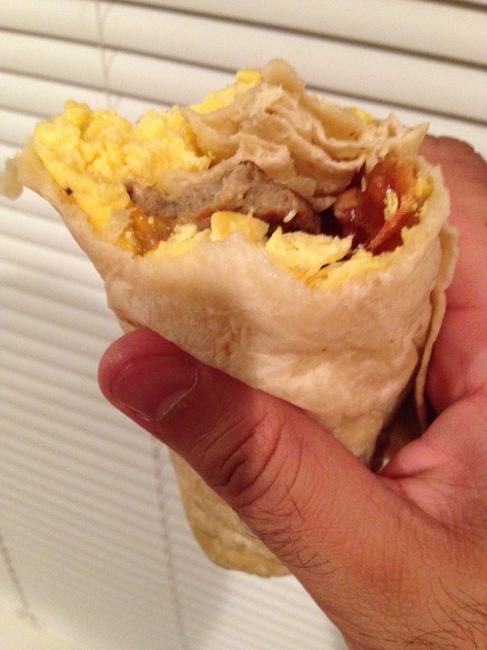 Meat lovers breakfast burrito from Jack in the Box on 99W. Tigard, OR.