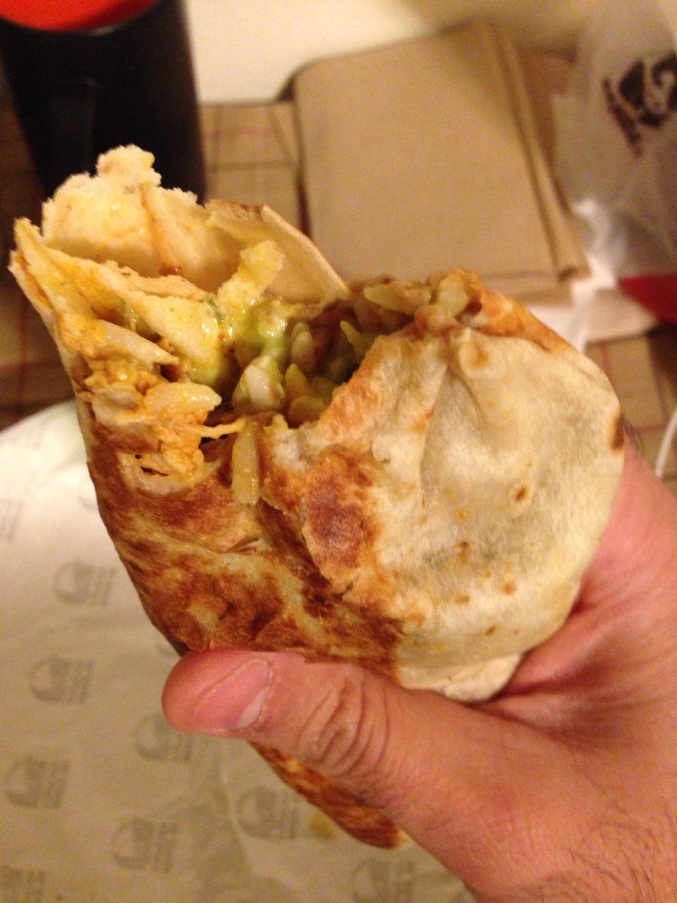 XXL Grilled Stuft Shredded Chicken Burrito from Taco Bell on Hegenberger Road. Oakland, CA.