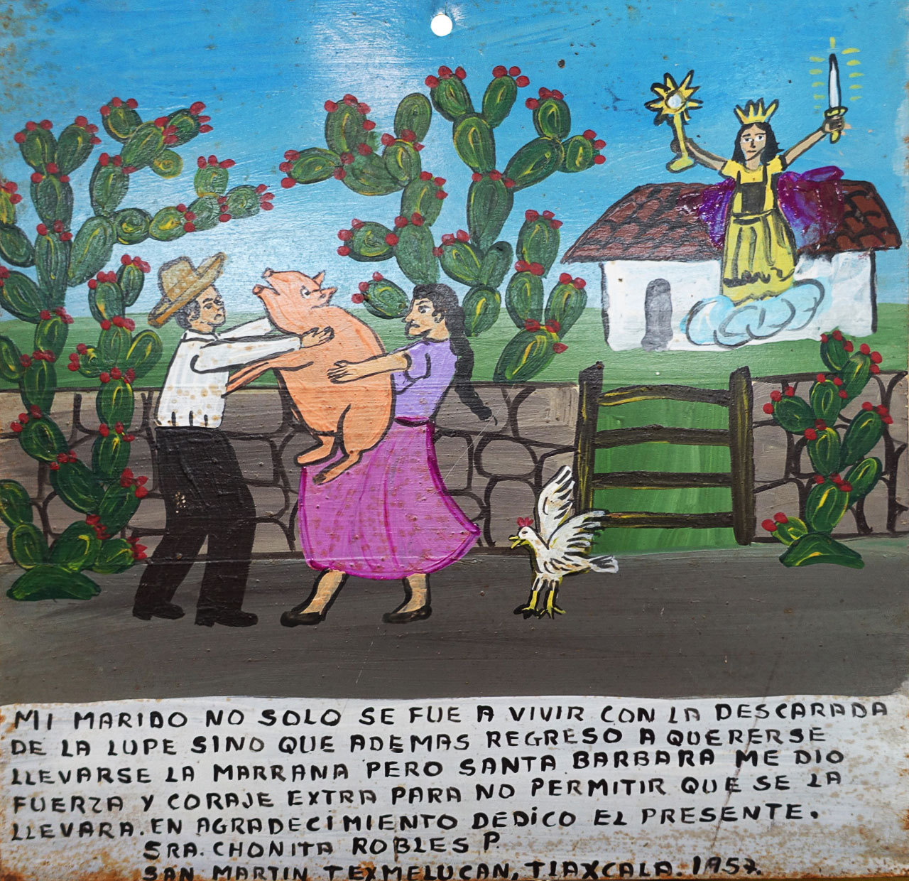 My husband not only went to live with this bitch Lupe, but also one day he came to take our pig. But Saint Barbara gave me strength and extra courage not to let him take the pig away. I dedicate this real in gratitude.