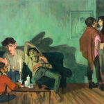 Salman Toor (Pakistani, b. 1983, Lahore, Pakistan, based Brooklyn, NY, USA) – 1: Ghost Story, 2019  2: The Green Room, 2019  3: Four Friends, 2019  4: After Party II, 2019  5: After Party, 2019, Paintings: Oil on Canvas / Panel
